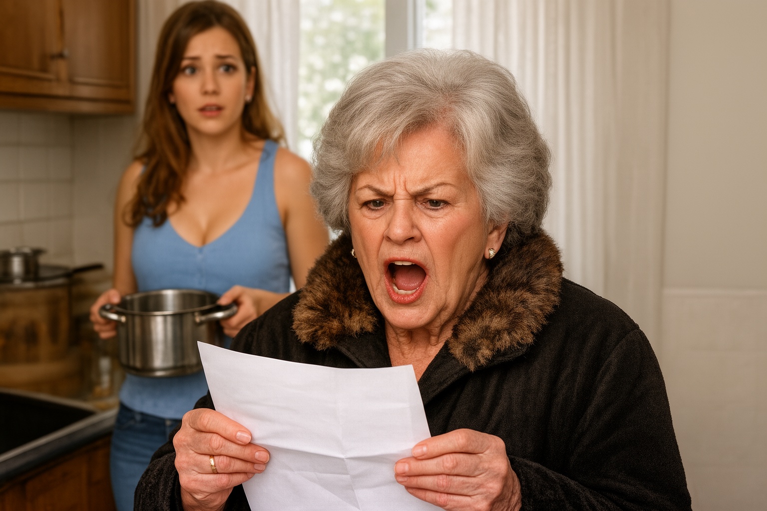 La sua voce vibrava di collera trattenuta mentre attraversava il corridoio come una furia. Elisa Mancini rimase immobile accanto ai fornelli, con una casseruola ancora stretta tra le dita, incapace di credere alla scena che aveva davanti. L’ingresso improvviso dell’anziana, avvolta in una pelliccia costosa, aveva congelato l’aria della cucina. Il volto di Anita era acceso dall’indignazione.
